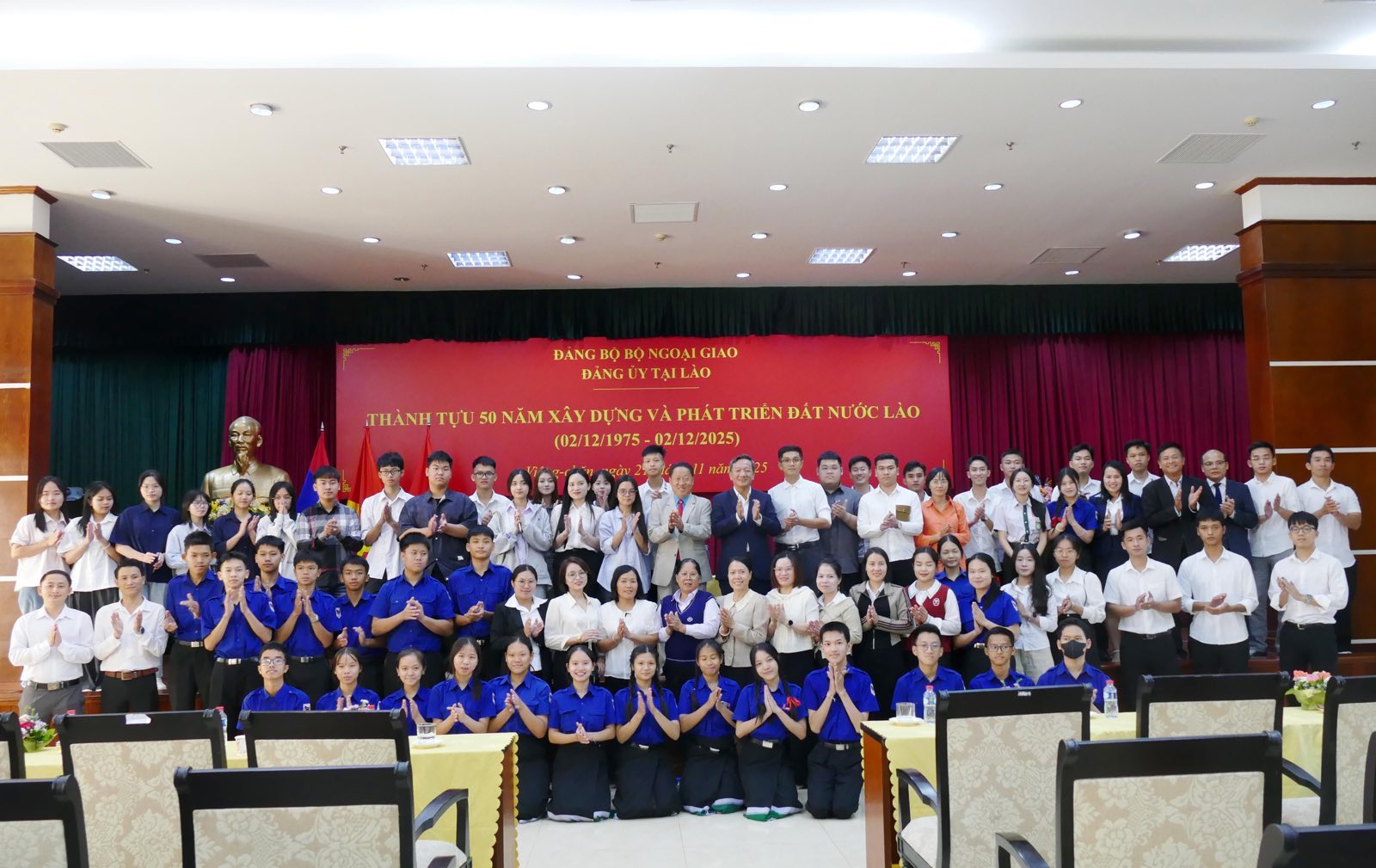 Nhân dịp kỷ niệm 50 năm Quốc khánh nước CHDCND Lào (02/12/1975-02/12/2025), chiều ngày 21/11/2025, Đảng ủy – Đại sứ quán Việt Nam tại Lào đã tổ chức nghe giới thiệu chuyên đề “Thành tựu 50 năm xây dựng và phát triển đất nước Lào”.