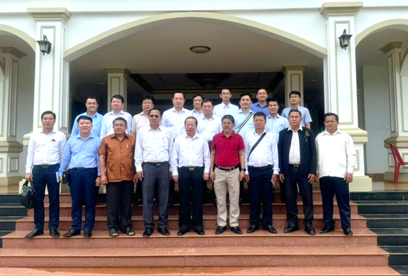 Đoàn đại biểu hai tỉnh Kiên Giang (Việt Nam) và Salavan (Lào) chụp ảnh lưu niệm sau buổi hội đàm. Ảnh: Trường Giang