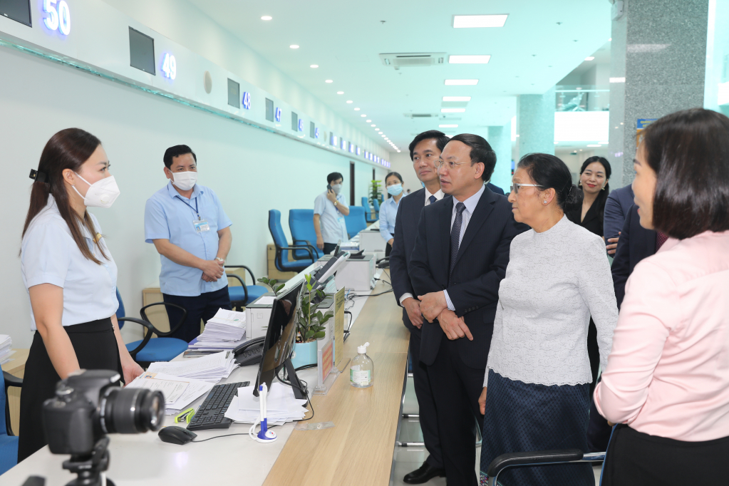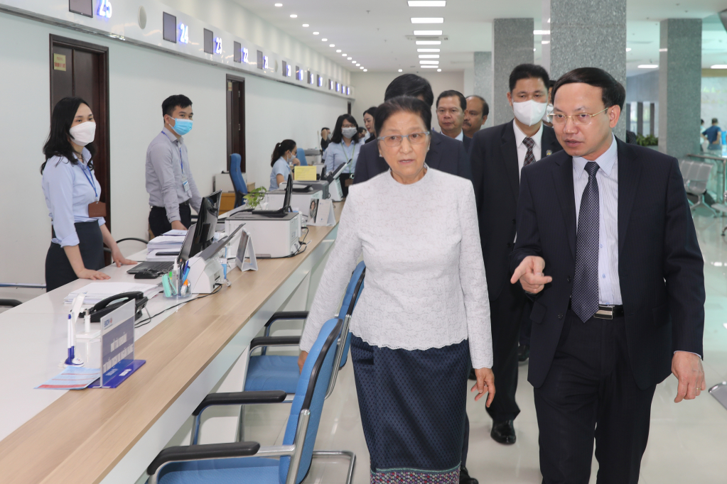 Ngay sau buổi tiếp xã giao, đồng chí Bí thư Tỉnh ủy đã mời Phó Chủ tịch nước CHDCND Lào Pany Yathotou đến thăm và giới thiệu các mô hình hoạt động tại Trung tâm Hành chính công tỉnh.