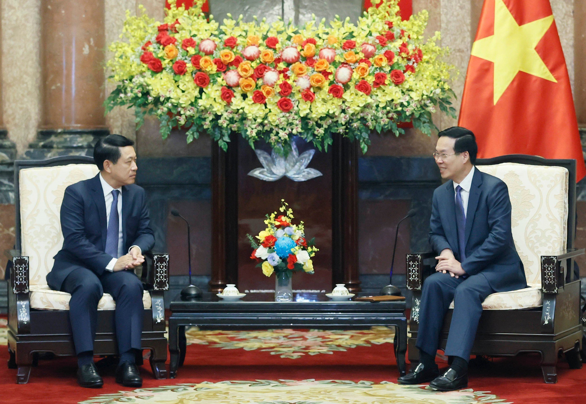 Chủ tịch nước Võ Văn Thưởng cảm ơn ông Saleumxay Kommasith đã phối hợp với các cơ quan chức năng của Lào quan tâm giúp đỡ, tạo điều kiện thuận lợi cho bà con Việt kiều, trong đó có cộng đồng người Việt Nam và các doanh nghiệp Việt Nam làm ăn, sinh sống ở Lào.