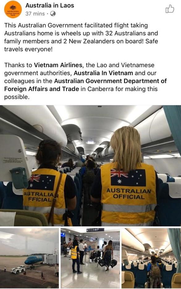 Đại sứ quán Úc tại Lào bày tỏ cảm ơn Vietnam Airlines và Chính phủ Việt Nam trên trang chủ của mình.